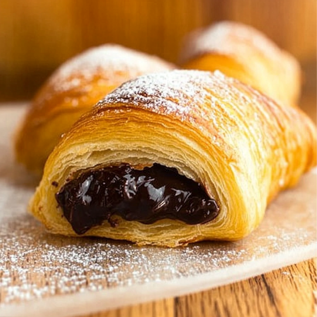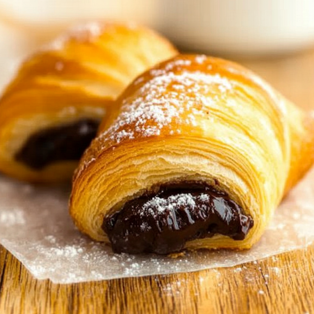 Indulge in the heavenly experience of homemade Croissants Filled With Chocolate. These flaky, buttery pastries are perfect for elevating any breakfast, brunch, or dessert spread. With rich chocolate tucked inside each layer, these croissants create an irresistible aroma that fills your kitchen and leaves a lasting impression on anyone who tries them. Perfectly golden-brown and delightfully fluffy, they embody the art of pastry-making while offering a rewarding baking experience for enthusiasts and novices alike.