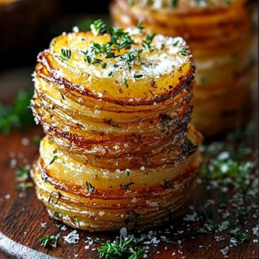 - Serve the potato stacks warm, garnished with fresh herbs for a delightful starter.