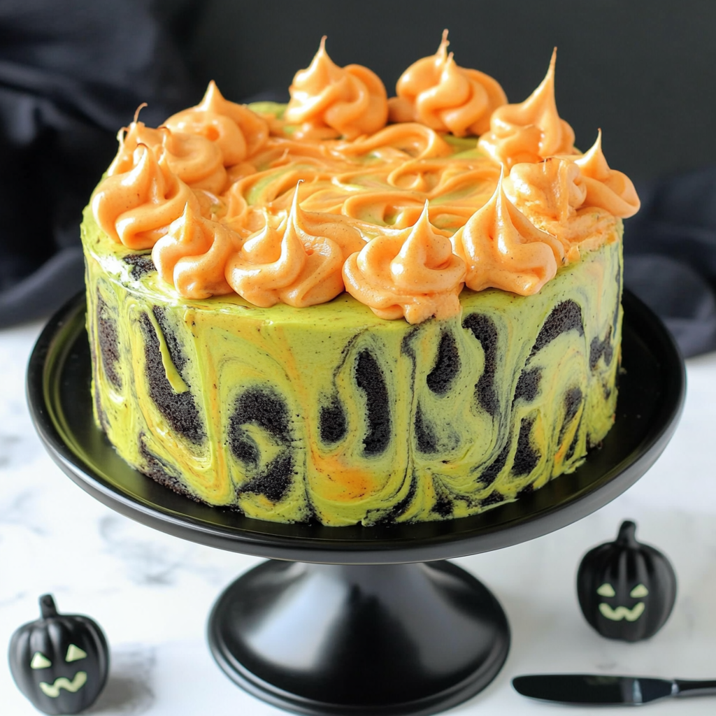 The Spooky Halloween Marble Cake is not just a treat for the taste buds but also a visual delight. To make this cake even more festive, here are some creative serving suggestions.