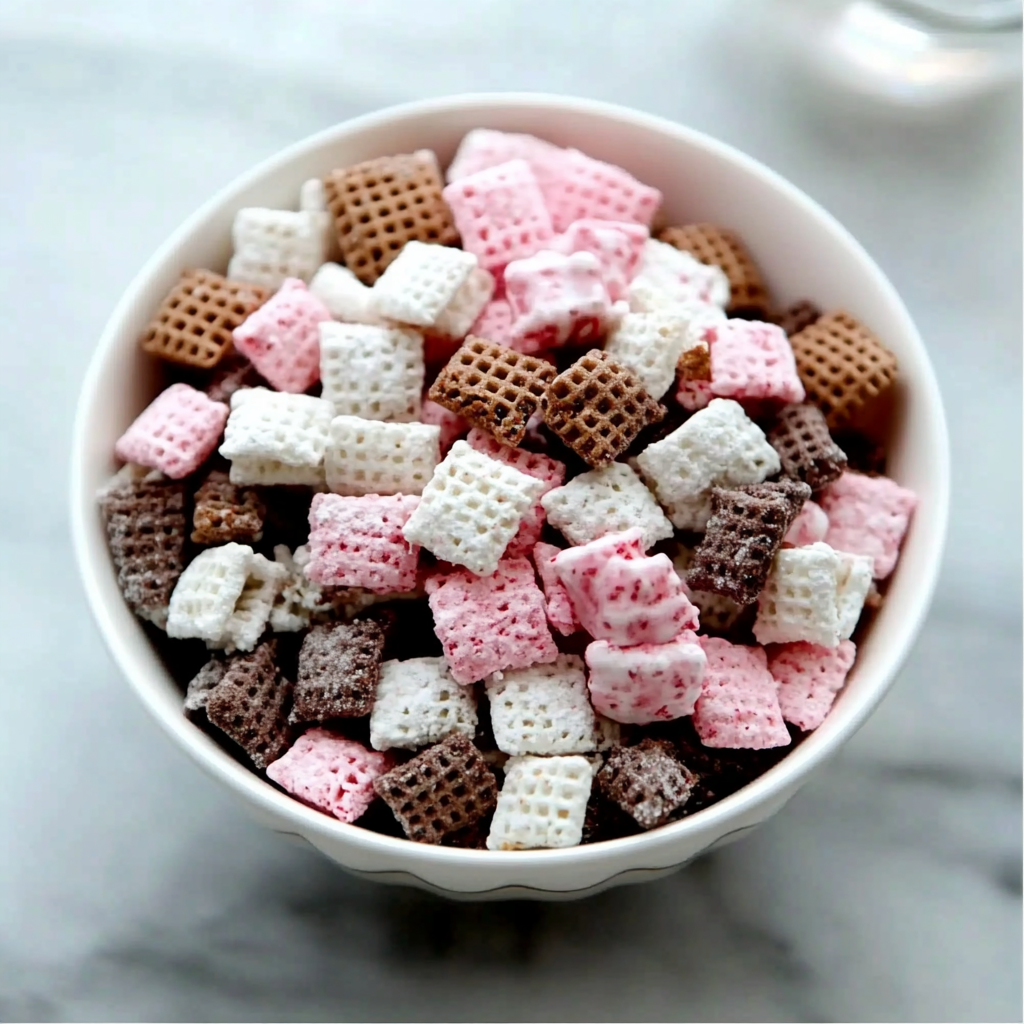 How to Serve Sweet Easy Neapolitan Puppy Chow Snack Mix